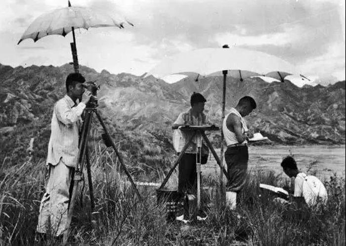 上世紀五十年代我國科技人員進行壩址地質(zhì)勘察(陳仲原供圖)