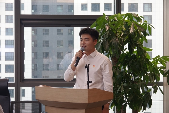 青年代表在北京通州區(qū)中倉街道黨工委慶祝中國共產(chǎn)黨成立104周年主題黨日活動上作主題宣講